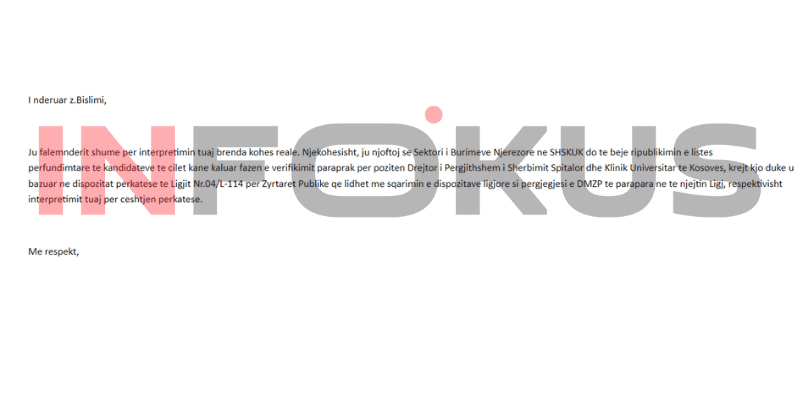 Me një përgjigje në kohë reale, Ministria e Punëve të Brendshme sot rreth orës 13:00 i ka kthyer përgjigje burimeve njerëzore të ShSKUK-së duke e konsideruar të kundërligjshme që emri i Basri Sejdiut të jetë pjesë e garës.