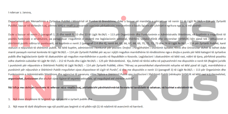 E gjithë kjo pas një komunikimi që burimet njerëzore të ShSKUK-së patën me Departamentin për Menaxhimin e Zyrtarëve Publikë në Ministrinë e Punëve të Brendshme të udhëhequr nga Xhelal Sveçla.